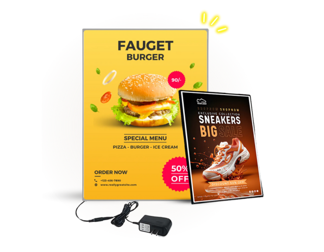 Transform your business ambiance with our Slim LED Light Frame, the ultimate display solution for restaurants, hotels, events, and more. Showcase your menu, promotions, or event highlights with a vibrant LED Picture Frame that captivates attention and elevates customer experience. Sleek, energy-efficient, and versatile, our LED Frame is perfect for making your business stand out in style.